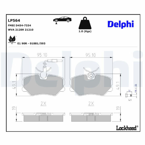 Sada brzdových destiček, kotoučová brzda DELPHI LP564