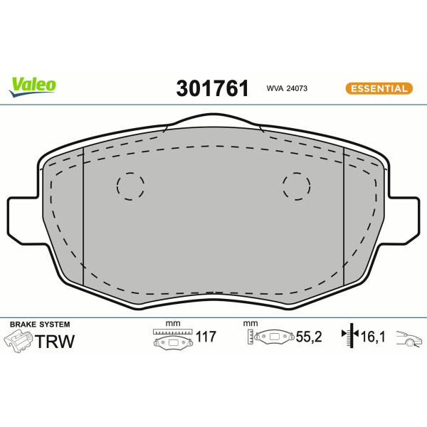 Sada brzdových destiček, kotoučová brzda VALEO 301761